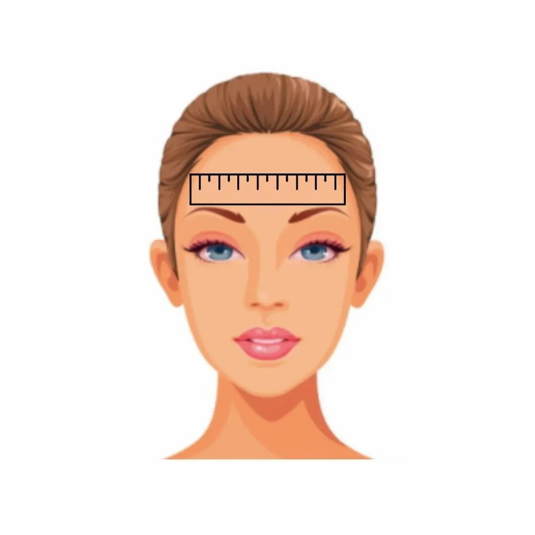 প্রথমত, আপনাকে আপনার কপালের প্রশস্ত অংশের প্রস্থ পরিমাপ করতে হবে। সবচেয়ে সঠিক ফলাফলের জন্য, হেয়ারলাইনের উভয় পাশ থেকে কপালের প্রশস্ত অংশটি পরিমাপ করুন।